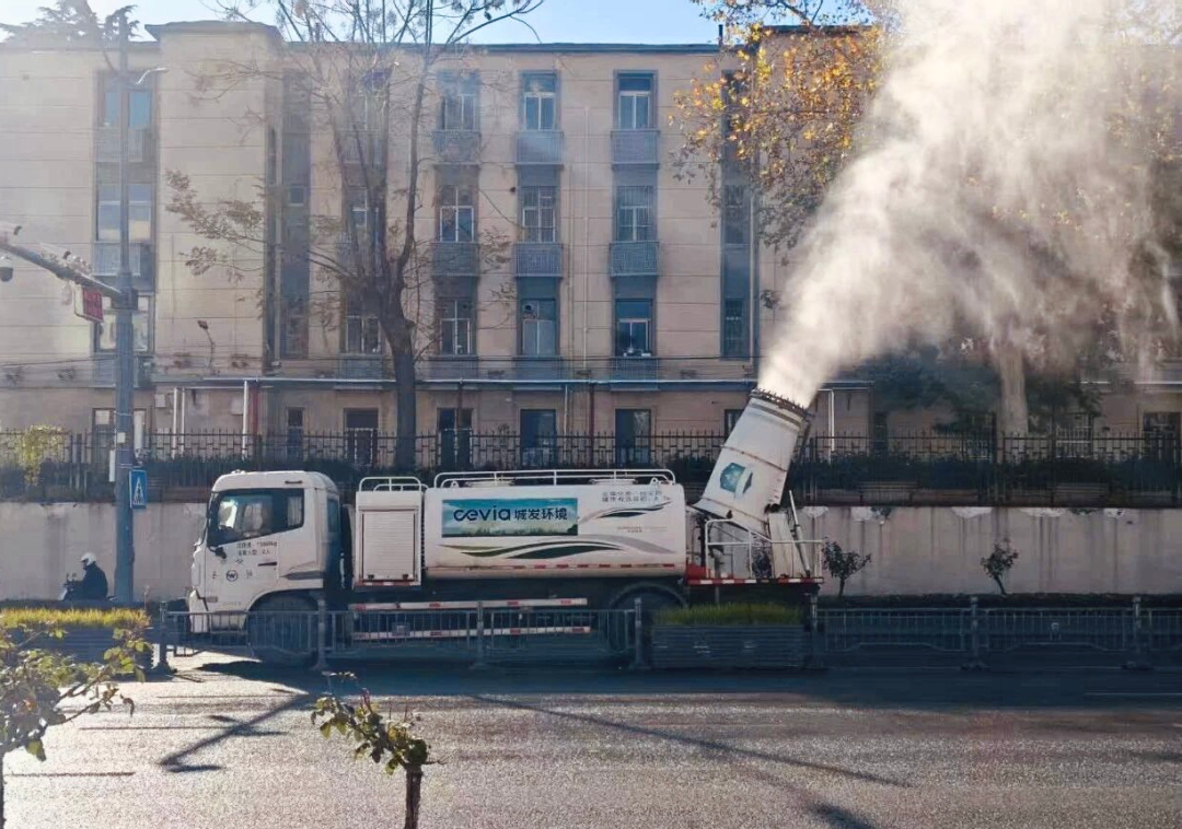 常态防御模式(轻度污染):启动“洗扫抑尘”双子星组合。洗扫车利用高压水流对路沿石及路面进行深层剥离清洗,雾炮车紧随其后,向低空喷洒微米级水雾,高效吸附悬浮颗粒,构筑第一道防尘屏障。